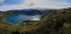 7.- Laguna de Quilotoa.- Se sitúa 79 kilómetros al noroeste de la ciudad de Latacunga, es el lugar que más admiración ha causado a los turistas que lo han visitado, se maravillan al ver su extensa masa de agua en lo alto de un cráter del volcán que lleva su mismo nombre.
